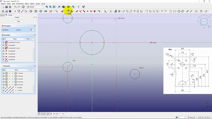 Este módulo aplica na prática os conceitos de esboço, abordando configurações do Sketcher, validação, erros comuns e a importância do esboço totalmente restrito. O aluno realiza o primeiro PAD e utiliza a grade para melhorar o posicionamento dos elementos. Em seguida, desenvolve uma sequência de dez atividades progressivas, fortalecendo o domínio das ferramentas e aprimorando a precisão geométrica.