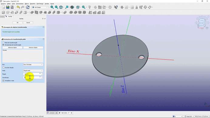 O módulo apresenta todas as operações essenciais do ambiente PartDesign, incluindo preenchimento, revolução, loft, tubos e hélices aditivas e subtrativas. O aluno aprende a criar geometrias complexas, realizar perfurações e ranhuras, aplicar filetes e chanfros, criar cascas e espessuras, além de utilizar operações booleanas. São exploradas ferramentas de espelhamento, padrões lineares e polares, finalizando com multi-transformações para projetos completos.